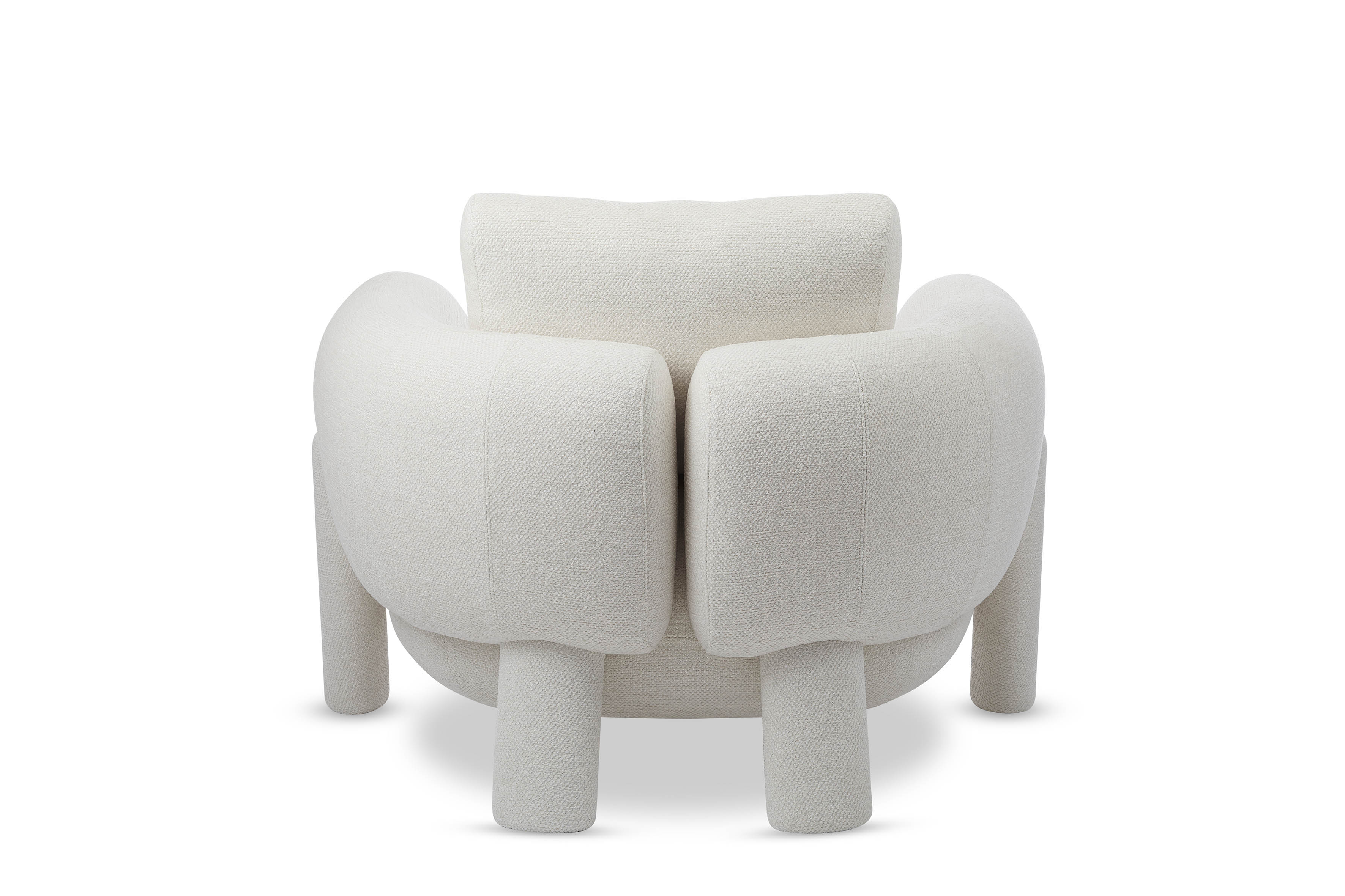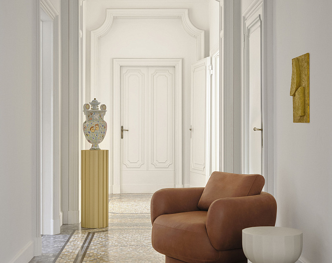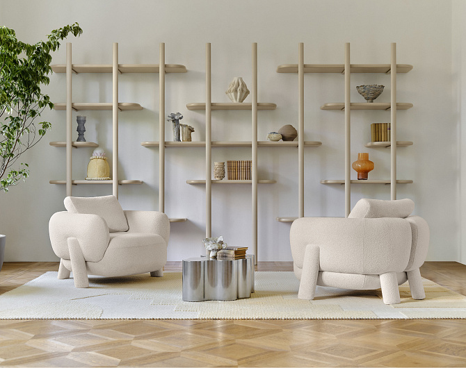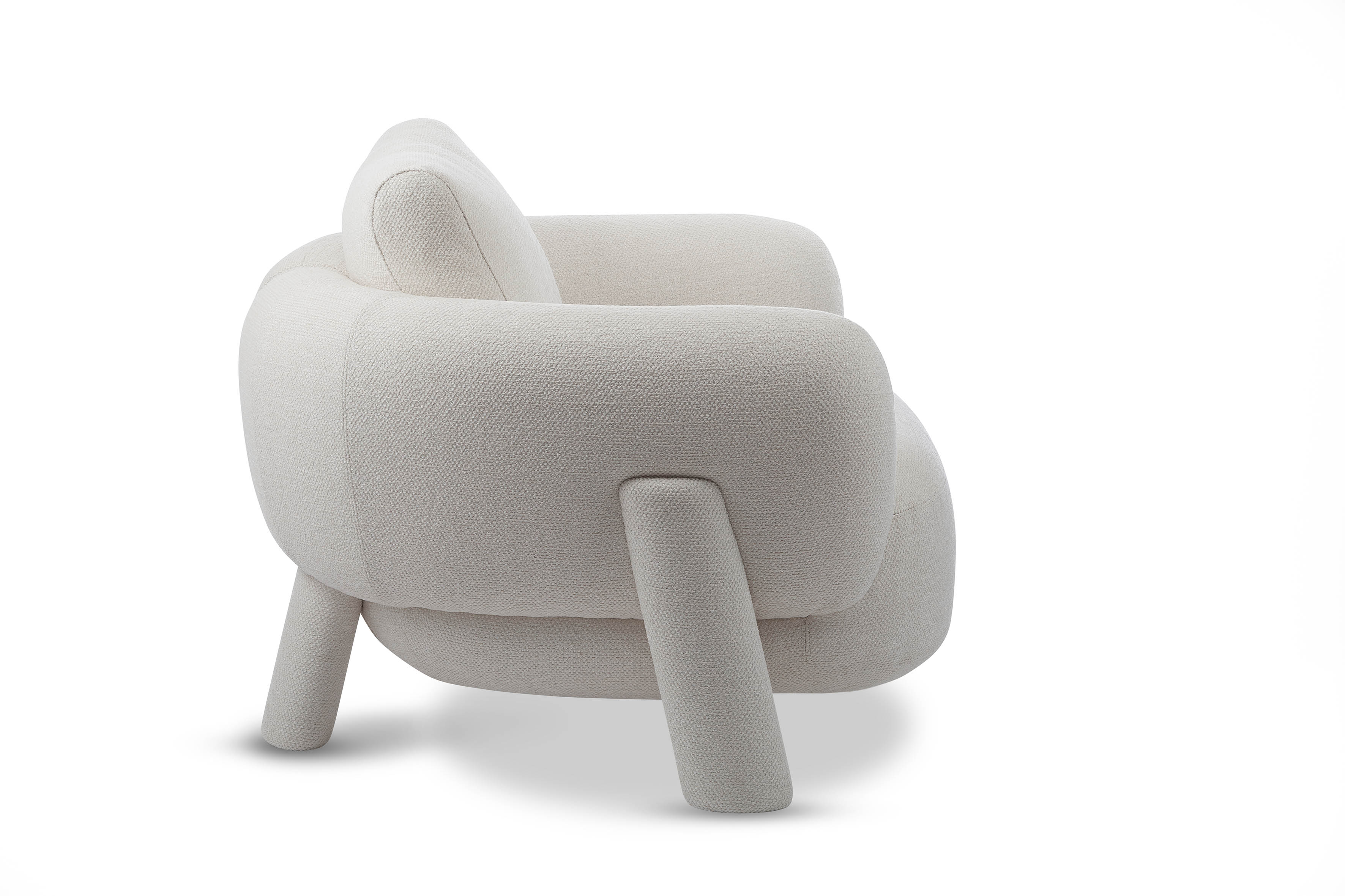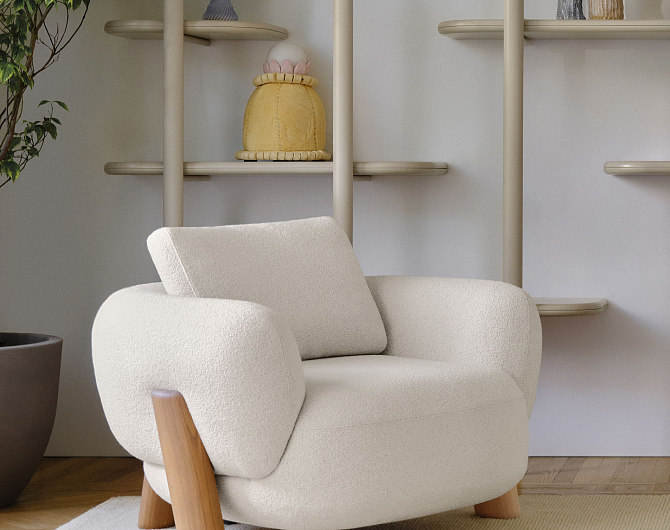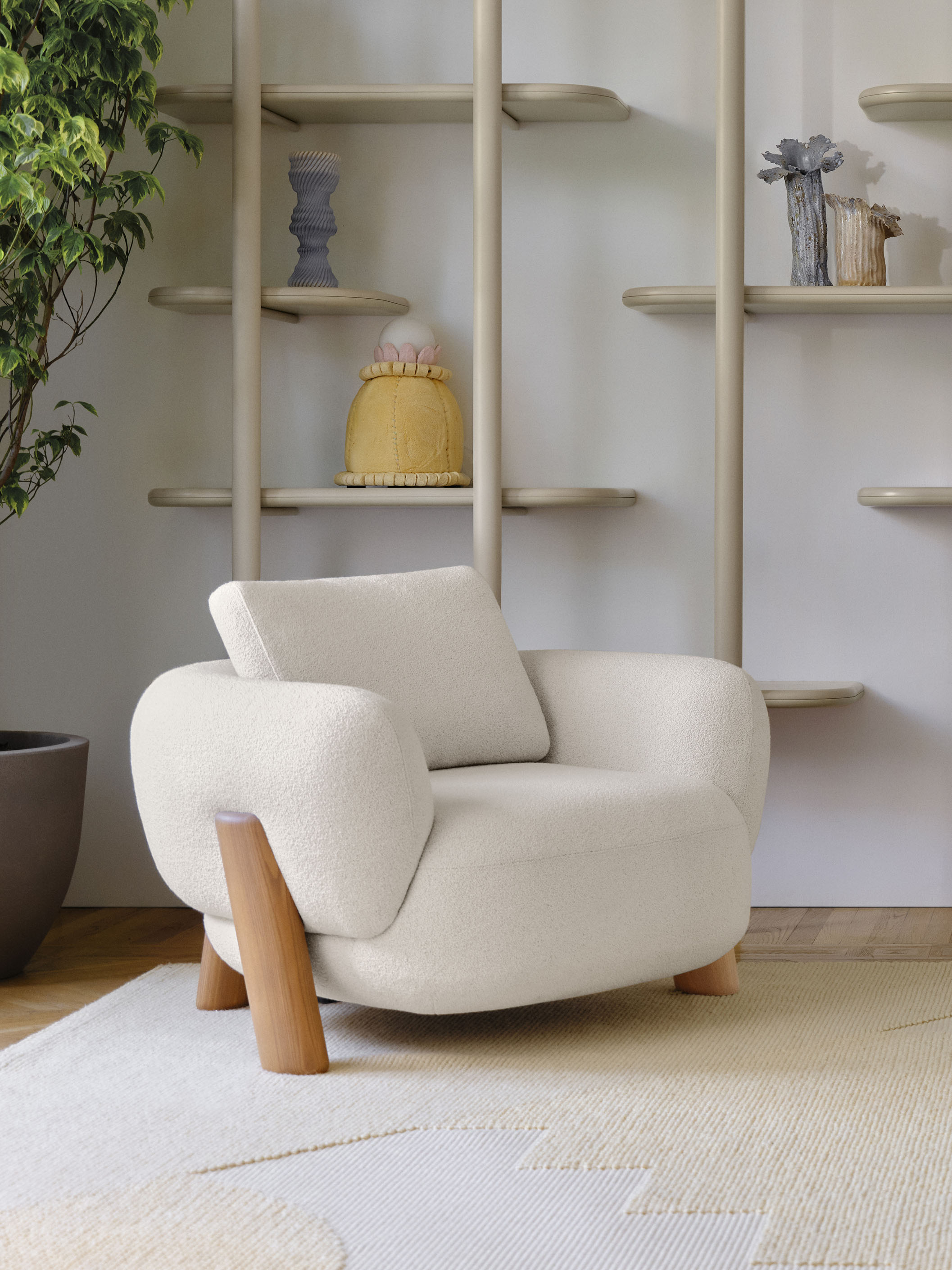 Изящное кресло Anam словно соткано из воздуха — его мягкие, округлые формы создают впечатление невесомости и эфемерности. Опираясь на элегантные колонны, оно будто принадлежит параллельному миру, где царит идеальный баланс между формой и содержанием.