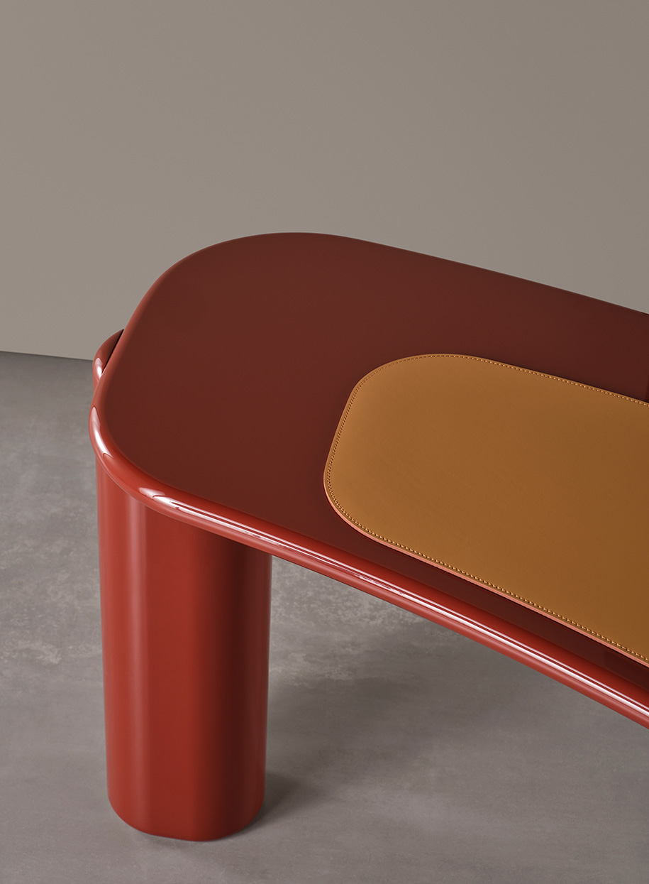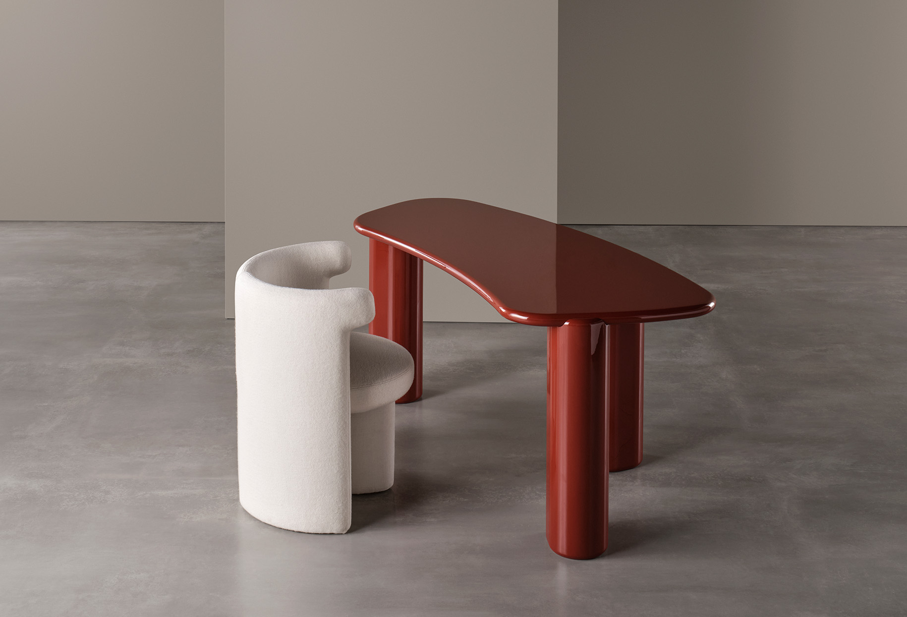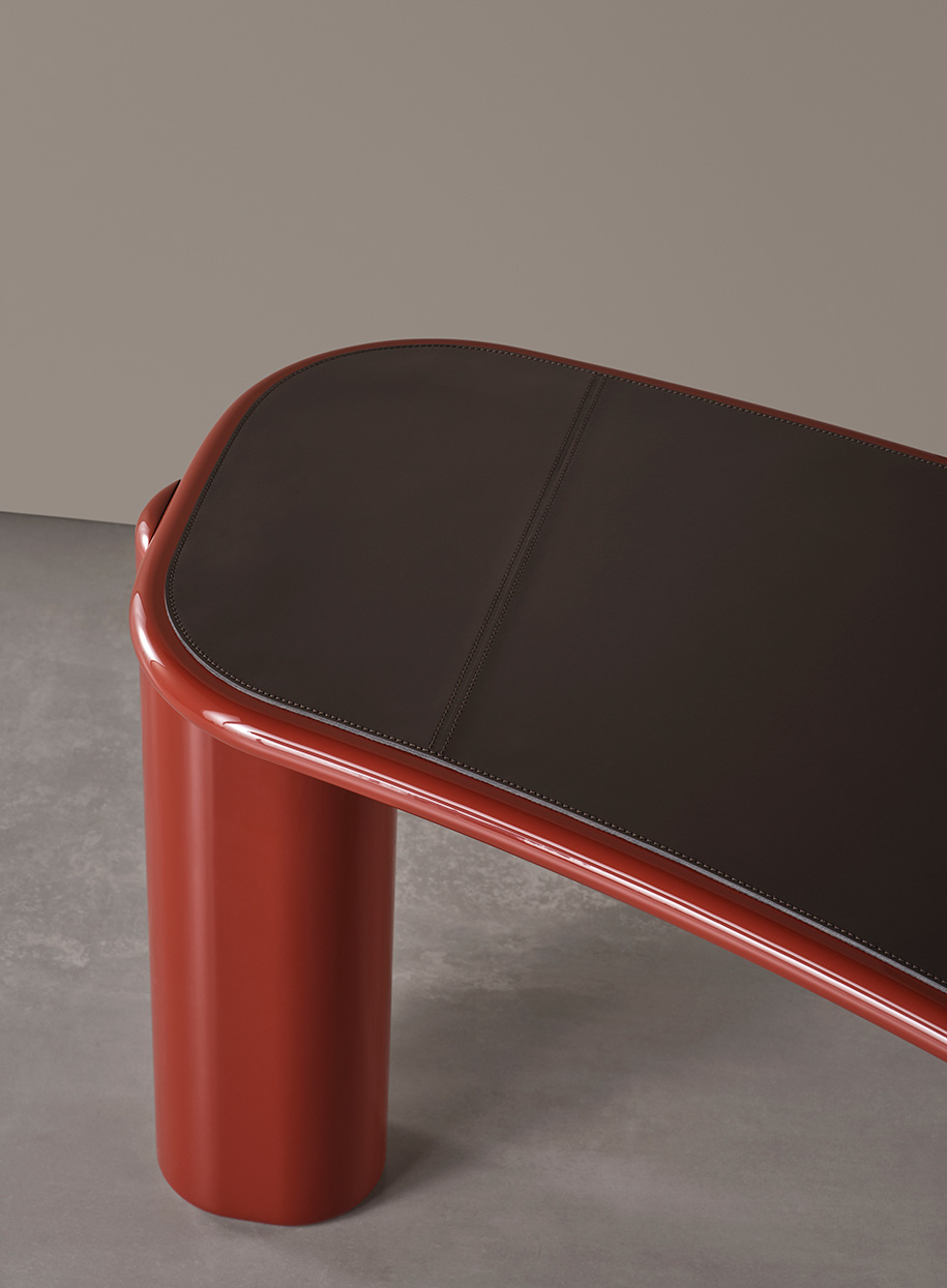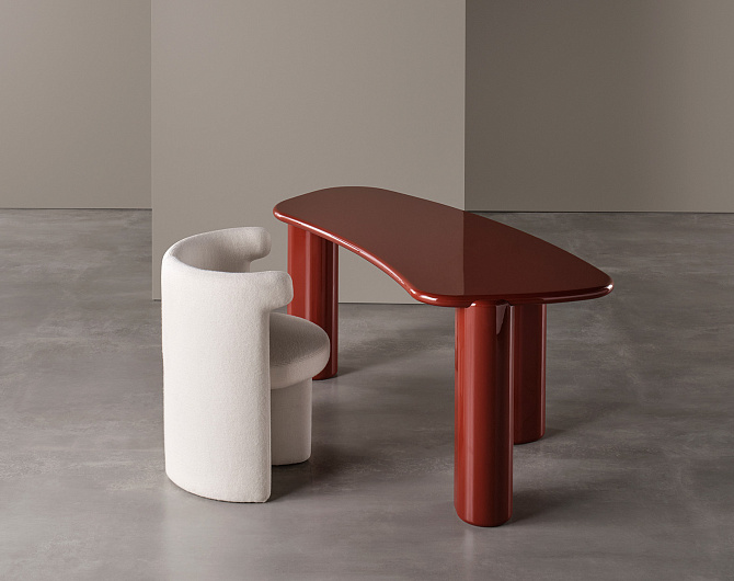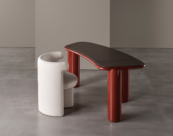 Письменный стол Henry представляет собой уникальное дизайнерское решение — трёхногий стол с изящными, плавными линиями. Его отличительной чертой является мягкий силуэт, который в месте соединения ножек со столешницей перекликается с дизайном столов и журнальных столиков Frank, создавая единую стилистическую линию в интерьере.