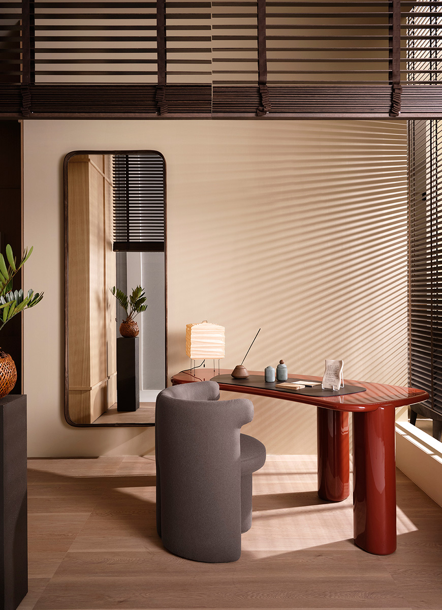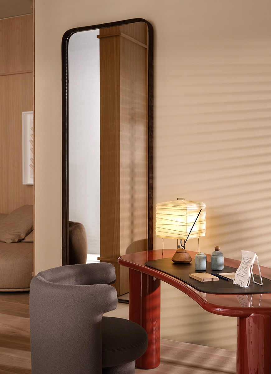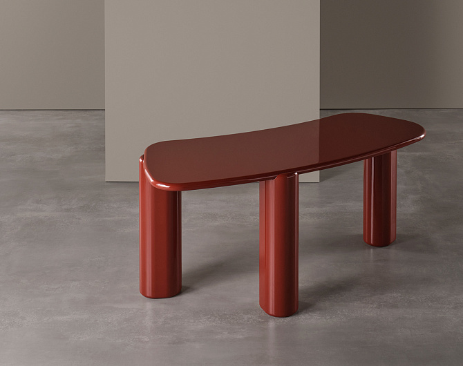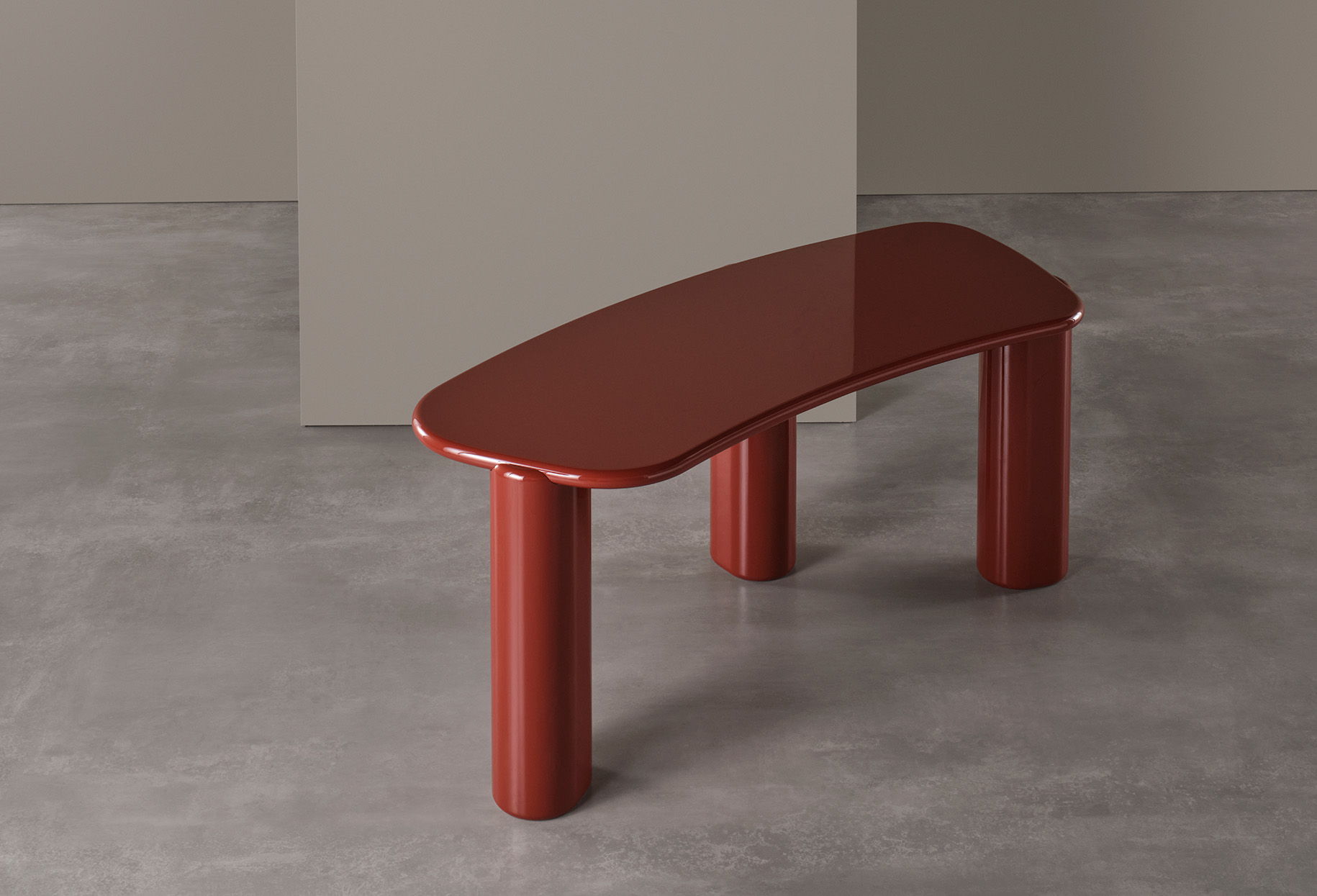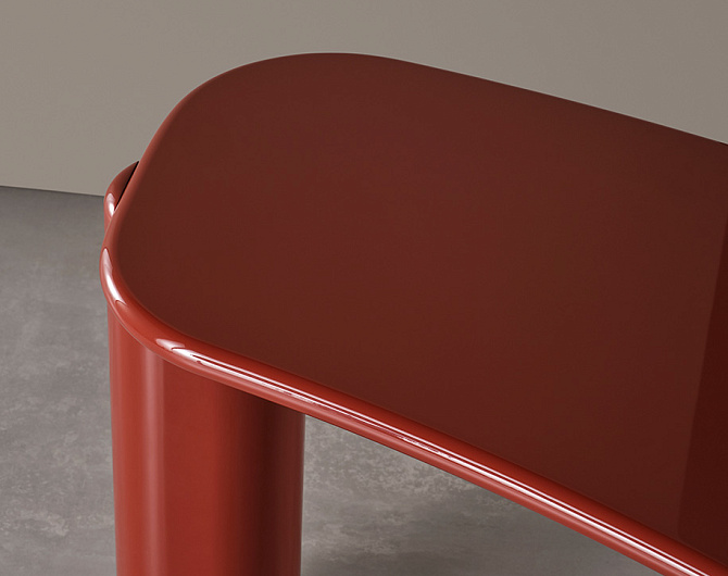 Письменный стол Henry представляет собой уникальное дизайнерское решение — трёхногий стол с изящными, плавными линиями. Его отличительной чертой является мягкий силуэт, который в месте соединения ножек со столешницей перекликается с дизайном столов и журнальных столиков Frank, создавая единую стилистическую линию в интерьере.