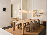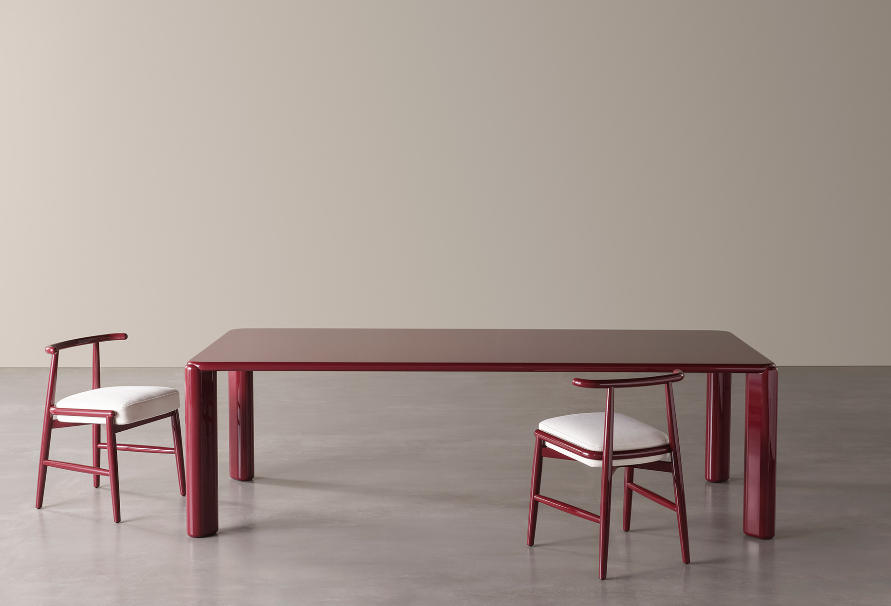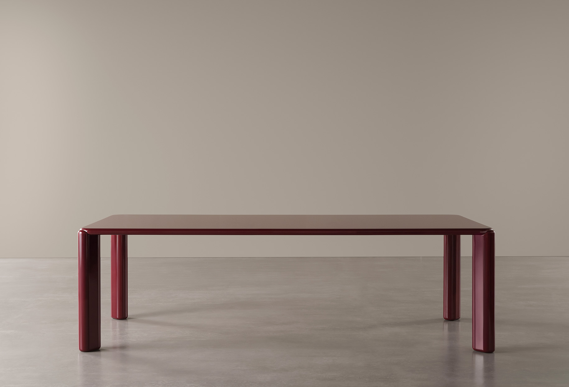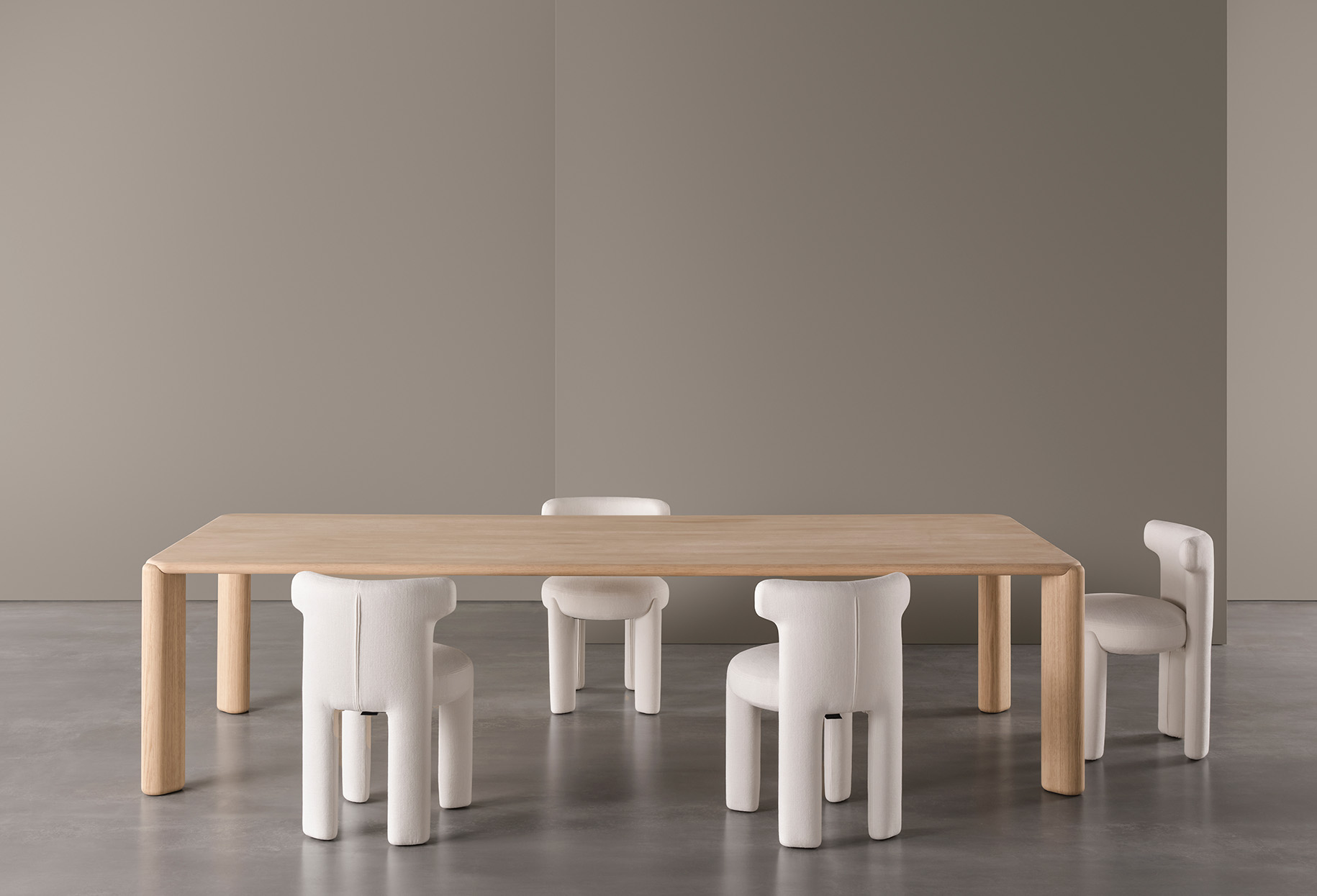 Дизайн ножек характеризуется утонченными, вытянутыми формами, придающими столу особую грацию и визуальную легкость. Коллекция представлена в трех прямоугольных форматах, причем максимальная длина стола достигает впечатляющих трех метров, что делает его идеальным решением как для небольших пространств, так и для просторных помещений.