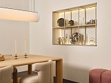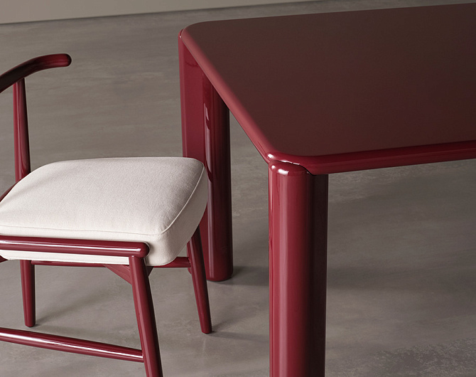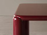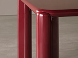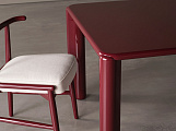 Конструктивная особенность стола заключается в его продуманной системе опоры. Продольные металлические стяжки обеспечивают надежную поддержку столешницы, в то время как элегантные ножки, поднимаясь вверх, изящно охватывают её по краям. Этот видимый соединительный узел стал визитной карточкой всей коллекции и перекликается с дизайном стульев Cosette и пуфа Gino, которые идеально дополняют коллекцию, создавая целостный и стилистически единый ансамбль.