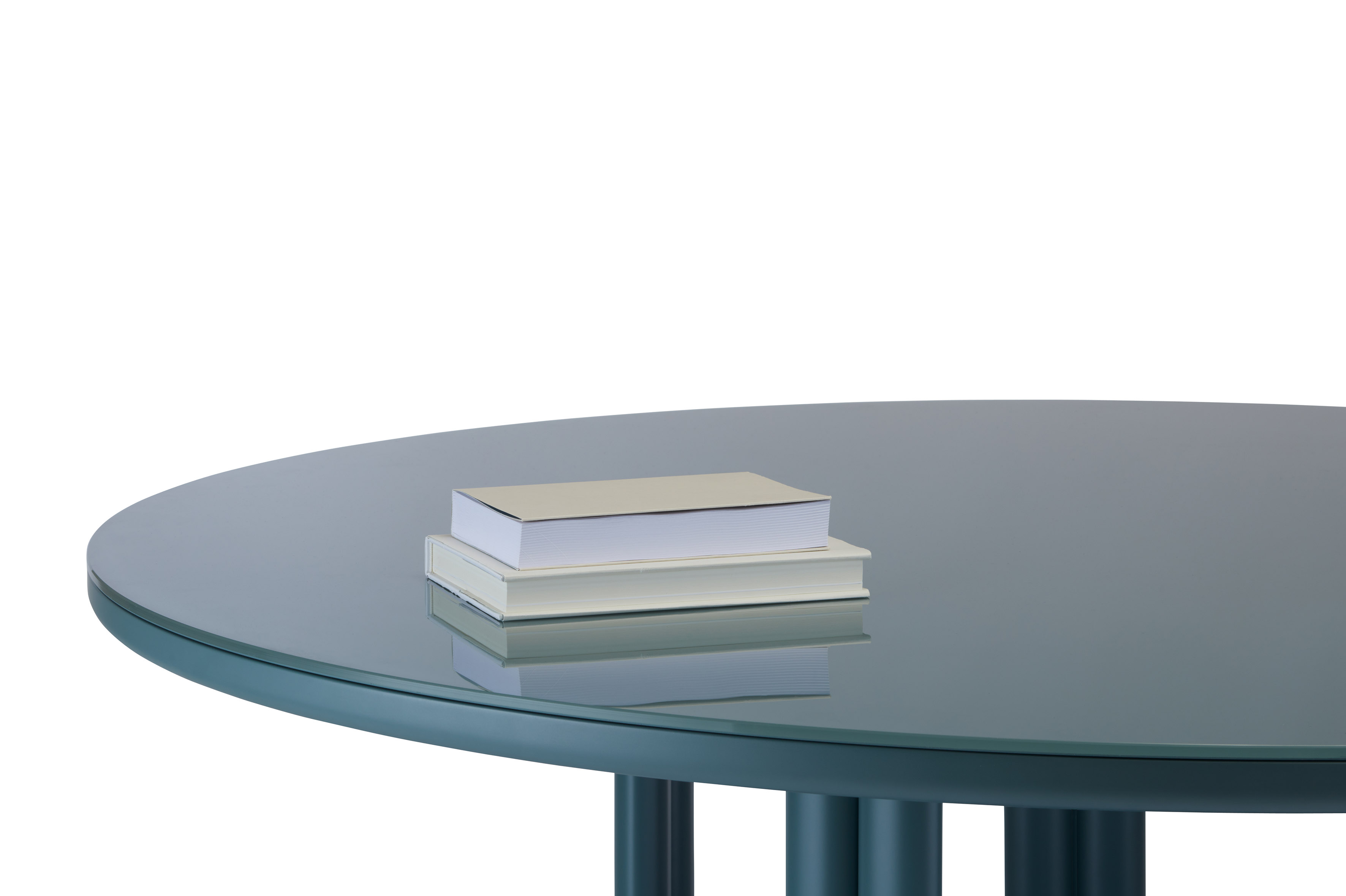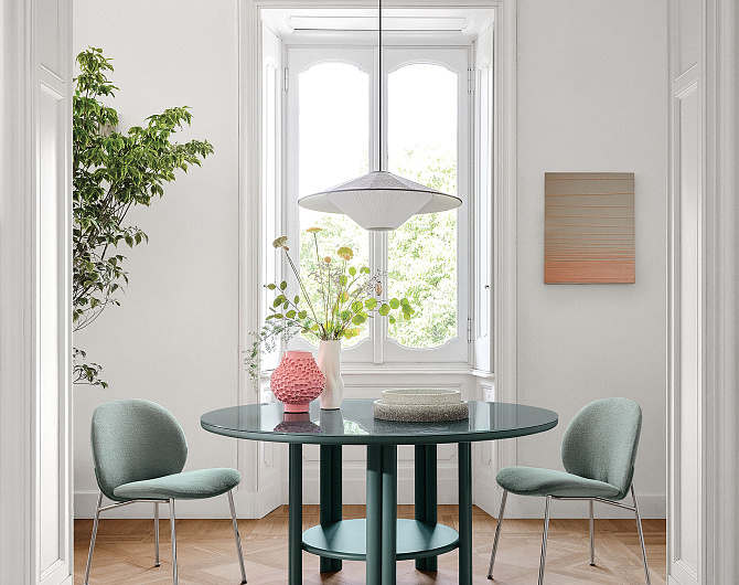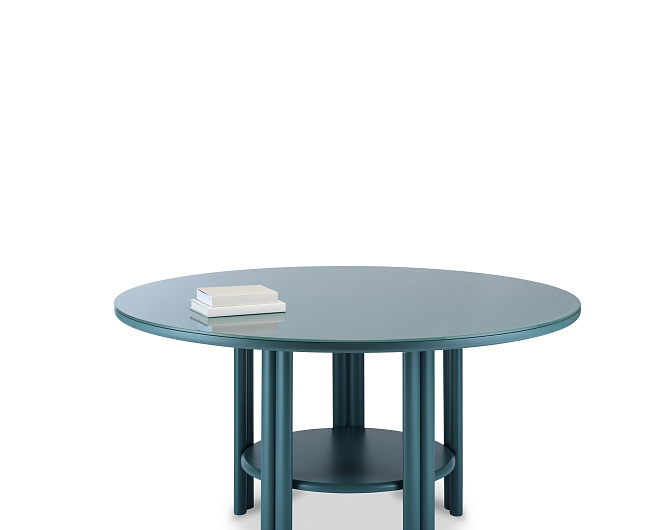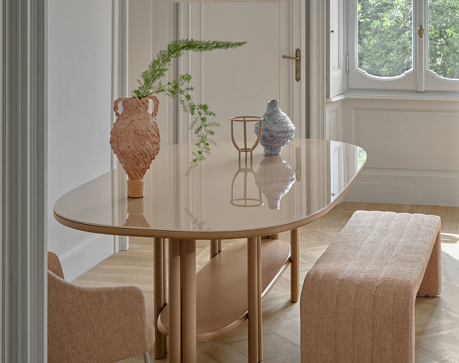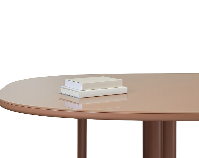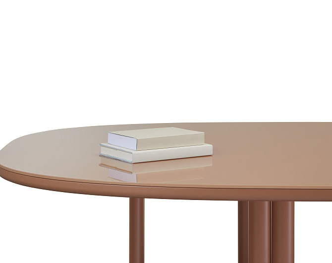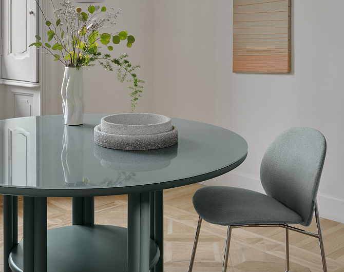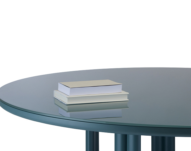 Дизайн стола вдохновлен вечной геометрией круга и величественными колоннадами античных сооружений. Его ножки, словно стражи времени, поддерживают столешницу, которая приглашает собраться вместе для приятного общения. В этом проявляется удивительный диалог между основательностью конструкции и визуальной легкостью форм.