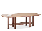 Эстетика стола основана на принципах минимализма и функциональности, где каждый элемент имеет свое предназначение. Массивные опоры создают ощущение надежности, в то время как плавные линии и формы придают изделию утонченность и изящество.